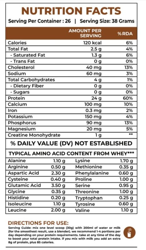 Suggested Use: Mix 1 scoop Protein with 200–250 ml of water or milk. Consume after workout or anytime you need a protein boost.
